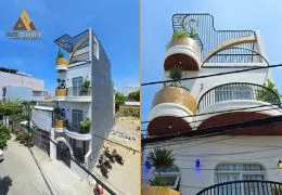 Dự án nhà anh Hoàng là mẫu nhà phố hiện đại mang đậm dấu ấn sáng tạo, được An Phát hoàn thiện với ngôn ngữ kiến trúc mềm mại và giàu tính nghệ thuật. Mặt tiền gây ấn tượng bởi các đường cong bo tròn tinh tế, kết hợp mảng tường đá phiến màu xám và hệ lam trang trí tạo nên chiều sâu thị giác độc đáo. Điểm nhấn lớn của công trình nằm ở phần ban công tầng trên, nơi đường cong được xử lý khéo léo để mở rộng tầm nhìn và tăng độ thoáng, đồng thời giúp ngôi nhà trở nên khác biệt giữa dãy phố.