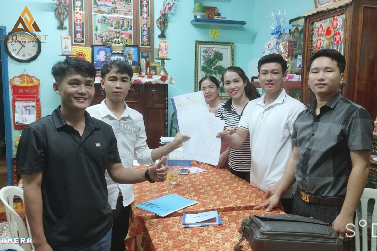 Sau khi hoàn tất các bước tư vấn và khảo sát, An Phát đã tiến hành ký kết hợp đồng xây dựng nhà cho anh Nghĩa. Các điều khoản về tiến độ thi công, chất lượng công trình và các yêu cầu kỹ thuật đã được thống nhất rõ ràng trong hợp đồng, đảm bảo quyền lợi và sự hài lòng của gia chủ. Đây là bước đầu tiên quan trọng để chính thức triển khai dự án xây dựng nhà 1 trệt 1 lầu, với cam kết hoàn thành đúng tiến độ và đạt chất lượng cao.