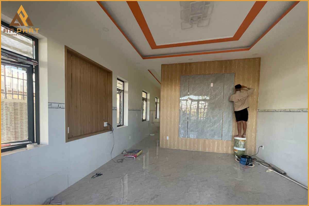 Sau quá trình thi công khẩn trương và đúng kỹ thuật, công trình nhà bác Tự đã bước vào giai đoạn hoàn thiện với các hạng mục như sơn nước, lát nền, lắp đặt thiết bị điện nước và hoàn thiện nội thất cơ bản. Mỗi chi tiết đều được đội ngũ An Phát chăm chút kỹ lưỡng nhằm đảm bảo sự đồng bộ và đạt độ sắc nét cao. Không gian bên trong được hoàn thiện sạch sẽ, gọn gàng, sẵn sàng đưa vào sử dụng. Giai đoạn này không chỉ đánh dấu sự kết thúc của quá trình xây dựng mà còn thể hiện cam kết về chất lượng và sự chuyên nghiệp trong từng công đoạn thi công.