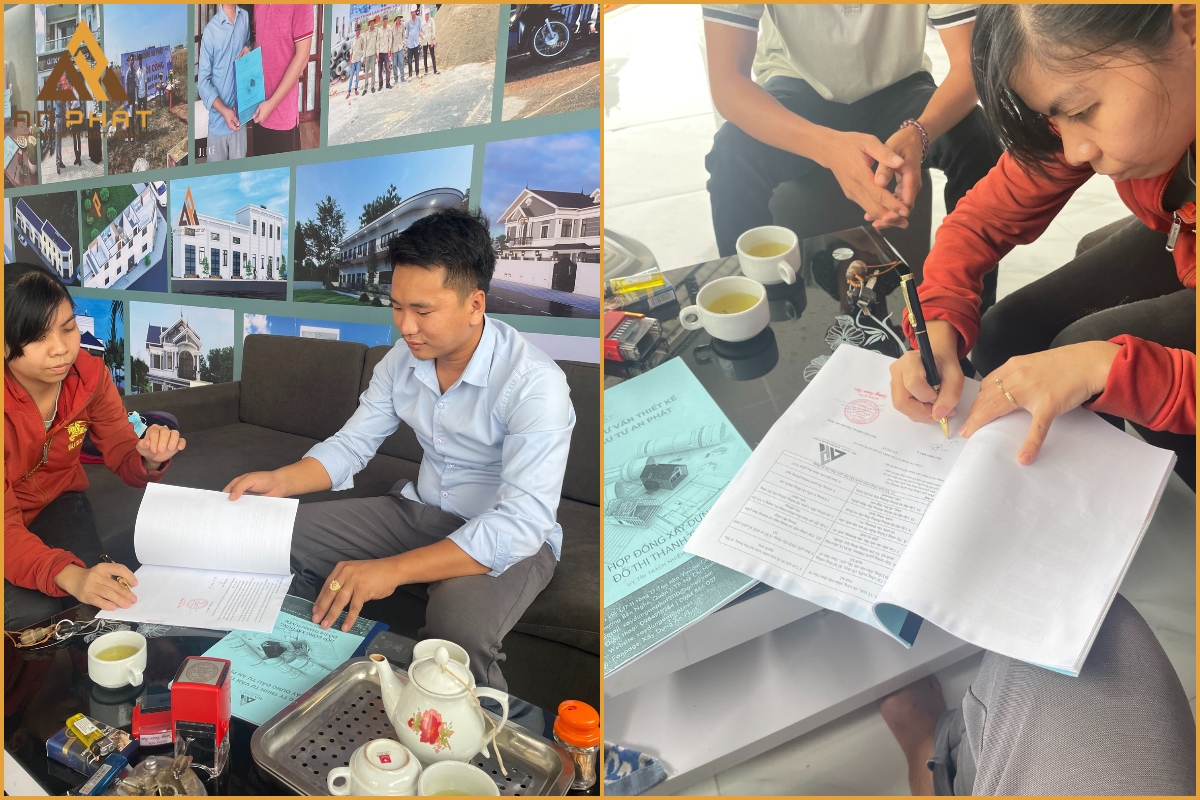 Sau khi thống nhất phương án thiết kế và các hạng mục thi công, An Phát và gia đình chị Tuyền đã tiến hành ký kết hợp đồng xây dựng trọn gói. Tất cả các điều khoản đều được trao đổi minh bạch, rõ ràng, đảm bảo quyền lợi cho cả hai bên trong suốt quá trình triển khai dự án. Việc ký kết không chỉ thể hiện sự tin tưởng của chị Tuyền dành cho An Phát mà còn là bước khởi đầu quan trọng cho một quá trình thi công chuyên nghiệp, đúng tiến độ và chất lượng cam kết.