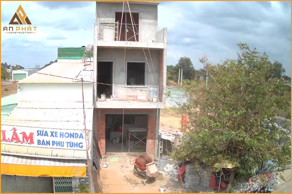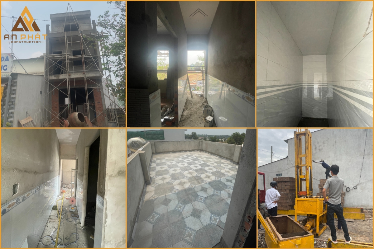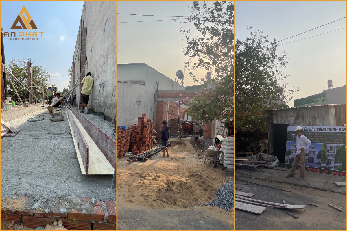 Sau khi hoàn tất các bước chuẩn bị và chốt phương án thiết kế, An Phát chính thức triển khai thi công nhà ở cho gia đình chị Tuyền. Quá trình thi công được tiến hành bài bản, tuân thủ nghiêm ngặt các tiêu chuẩn kỹ thuật và an toàn. Đội ngũ thi công làm việc liên tục, phối hợp chặt chẽ với bộ phận giám sát để đảm bảo chất lượng công trình ở từng giai đoạn. Từ phần móng đến phần thô đều được thực hiện kỹ lưỡng, tạo nền tảng vững chắc cho các hạng mục hoàn thiện về sau.