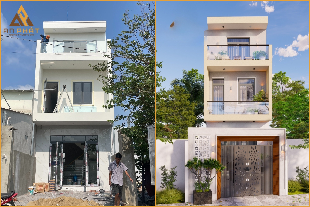 Ngôi nhà của chị Tuyền đã hoàn thiện sau quá trình thi công được giám sát chặt chẽ và triển khai đúng kế hoạch. Từng chi tiết, từ kết cấu xây dựng đến phần hoàn thiện bên trong đều được thực hiện một cách cẩn trọng, mang lại tổng thể hài hòa và đầy đủ công năng sử dụng. Không gian sống được thiết kế thông thoáng, tiện nghi, phù hợp với nhu cầu sinh hoạt của gia đình. Dự án là minh chứng cho sự tận tâm, chuyên nghiệp và cam kết chất lượng mà An Phát luôn duy trì trong mỗi công trình.
